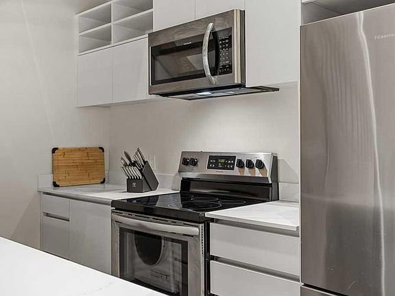 Open airy layoutSleek stainless-steel appliancesAbundance of cabinet space