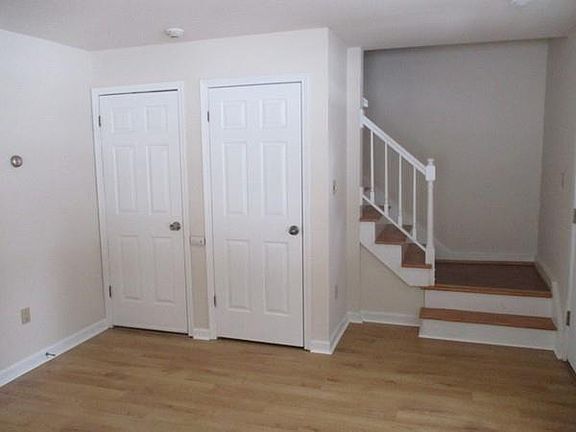 Why rent when you can own? Come take a look at this freshly painted private end unit with combination living/dining room leading to a private deck, half bath, well laid out kitchen and laminate flooring on 1st level. 2nd level features 2 good size bedrooms double closets in master bedroom and a full bath. Washer and dryer hookups are in the basement.