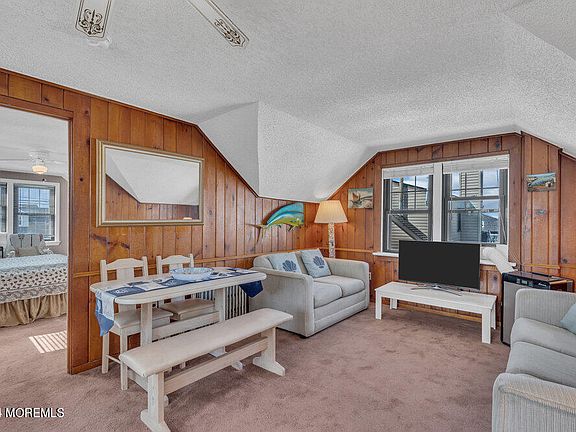 Rare upper level condo in the wonderful ''Ocean Breeze'' complex in Point Pleasant Beach! It's not hard to imagine yourself living the shore lifestyle with the beach & boardwalk within just a block and a half! This cozy unit features an open living-kitchen-dining flanked by 2 bedrooms & the full bath. Kitchen has gas cooking, dishwasher, great cabinet & counter space as well as a peek of the Ocean in case you ever forget that you're at the beach! Living & dining offers plenty of room for a meal or to relax with the classic knotty pine adorned walls. Primary bedroom is very spacious & features 2 skylights, & utilizes every inch with 2 closets & knee wall storage. 2nd bedroom has closet & storage as well. Full bath is a tub/shower combo. You'll enjoy the convenient & direct access to the laundry room & common area storage below. There is also a common BBQ area & outdoor shower! Assigned parking completes it! Monthly HOA is $484 & includes the flood insurance, rentals are allowable here also! With some easy cosmetic updates you'll be well on your way to living the beach lifestyle on your own terms!