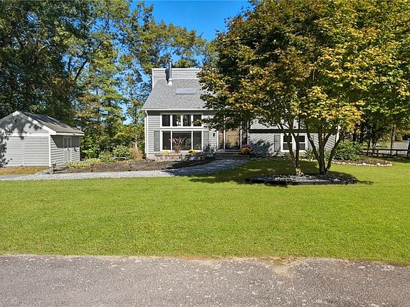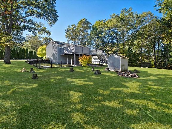 Beautiful home set on a partially wooded ½-acre corner lot offering modern comfort and versatility. This spacious 3-bedroom home includes a wonderful floorplan, with 2 bedrooms up, an updated full bath, and an open-concept living area with cathedral ceilings. The kitchen features stainless steel appliances, granite countertops, and a center island perfect for entertaining. The above grade walk out lower level includes living space, a 3rd bedroom, laundry storage and a utility room. Enjoy the expansive outdoor deck, fire pit, and large yard for gatherings. A backyard shed provides space for tools, while the extra-large 250 sq. ft. outbuilding offers endless possibilities for storage, hobbies, or larger equipment. Conveniently located near area lakes, the Center of New England, and I-95, ideal for both relaxation and commuting.