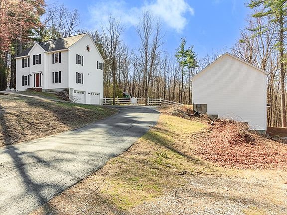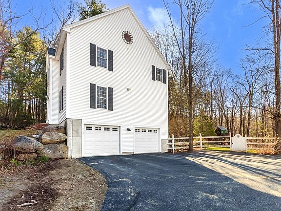 3 Bedroom Colonial on 2.1 acres in a lovely country neighborhood. LARGE OPEN CONCEPT KITCHEN / DINING ROOM with stainless steel appliances and granite counter-tops. Kitchen, Dining, Family room, Den and ½ bath on first floor. Second floor includes 3 bedrooms and 2 bathrooms. LARGE MASTER BEDROOM has a vaulted ceiling. Other great features include: HARDWOOD & BAMBOO FLOORING throughout the home, built in bookshelves in 2 bedrooms, Large multi-level deck with fenced in back yard. NEW HIGH EFFICIENCY BOILER heating unit, Rinnai hot water heater, 4 YEAR-OLD ROOF and large 2 car garage under. Save energy costs with SOLAR PANELS, lease to be assumed by buyer. Award winning Hollis/Brookline School District. In 2022, Seller built an ADDITIONAL 3 BAY GARAGE with FINISHED UPPER LEVEL 36’ x 24’. 864 SF of potential IN-LAW or AIR BNB or BUSINESS SPACE or YOGA STUDIO with a roughed-in bathroom on the upper floor with level walk out onto the paved driveway. The space is Central Heated & Air Conditioned, and beautiful OAK FLOORING. Great opportunity for oh so many uses! Check this property out for its many features, you don’t want to miss this one!
