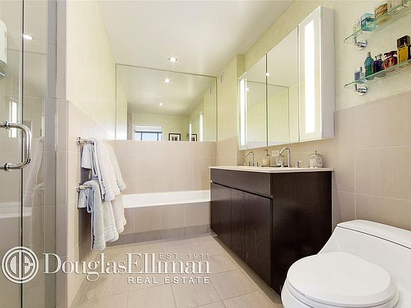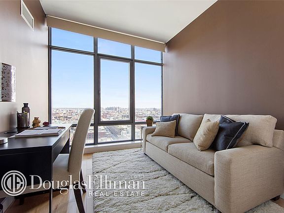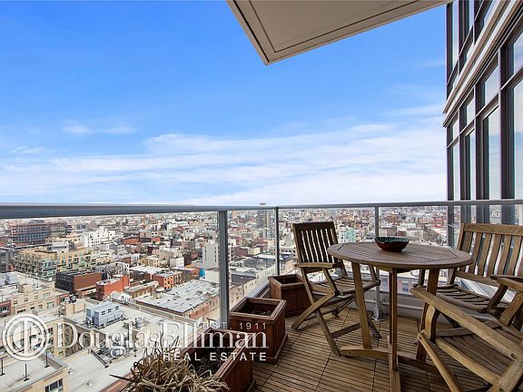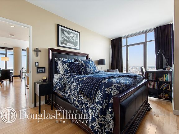 This spacious corner 2-bedroom, 2-bath condo features a wall of windows designed to maximize light and offers unobstructed views. With substantial living and dining space, this home also features a large bedroom and a walk-in closet. The kitchen is designed to meet the needs of any chef with Thermador ovens and cooktops, Sub Zero refrigerators, Bosch dishwashers and Quartzite countertops. The bathroom has marbled vanity tops and a Kohler sink and soaking tub. A vented washer and dryer is conveniently located in the apartment and a cozy 93 square foot balcony with eucalyptus wood flooring is tucked in a nook of the building providing protection from high winds. The floors have been upgraded to Natural Maple, which is harder and more durable than the 1/8" veneer floors originally installed by the sponsor. All closets have been fully customized by "Closets By Design". A 25 year tax abatement expires in 2034. Teeming with amenities, Northside Piers features a fitness club, resident's lounge, full-time concierge, yoga room, roof deck, pool, hot tub, sauna, children's room and garage. Northside Piers is located on the Williamsburg waterfront and is close to the new landscaped pier, Sunday flea market, restaurants, galleries and all that Williamsburg has to offer.