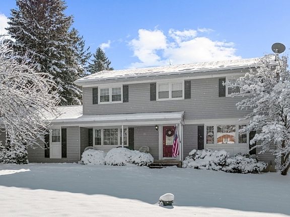 Pride of ownership shines throughout this well-maintained 4-bedroom, 2.5-bath Colonial set on a private 1.35 acre lot. The updated, spacious kitchen features stainless steel appliances, generous cabinetry, and a cozy breakfast nook with window seat. The inviting first floor includes formal living and dining rooms, along with a sun-filled family room featuring a fireplace with wood-burning insert. Sliding doors open to the sunroom overlooking a resort-like backyard with heated gunite pool, expansive patio, and lush landscaping ideal for entertaining or everyday enjoyment. The second floor offers a spacious primary suite and three additional bedrooms, while the partially finished basement can be used as an office, playroom or flex space