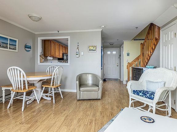 BEST MAINE BEACH is right in front of this condo at The Breakers By The Sea. 2 story condo with ocean views. Laminate flooring in living area. New washer/dryer. Second floor has 2 large bedrooms with high ceilings and ocean views. Nice area of the beach and you can walk to town and Ocean Park. Pet ok, and monthly rentals. Deck looking to the northeast with views. Storage in basement and parking for 2 cars under the building. Most furnishings remain