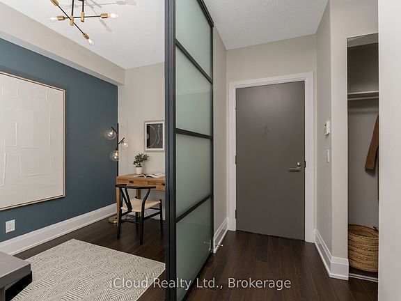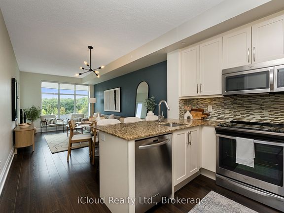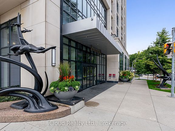 This beautifully upgraded 807 sq. ft condo will truly take your breath away. The spacious layout includes a large primary bedroom with a walk-in closet and private ensuite, plus the rare convenience of a second full washroom. The versatile open-concept den with custom sliding doors can easily be used as a second bedroom, dining room, or home office. The home features a modern kitchen with extended upper cabinets, granite counters, and designer flair, along with a laundry room offering additional storage. Stylish lighting highlights the 9-foot ceilings, while custom window coverings frame oversized windows that showcase a sunny, south-facing view of the lake is a stunning backdrop to your daily life. And as a bonus, maintenance fees here are lower than at neighboring 2 Old Mill. Perfectly located just steps from Bloor West Villages shops and restaurants, Brule Park, and the scenic Humber River and lakeside trails, this condo combines luxury, value, and lifestyle all in one. Parking is easily rented in the building - Seller currently pays $165 per month for a spot!