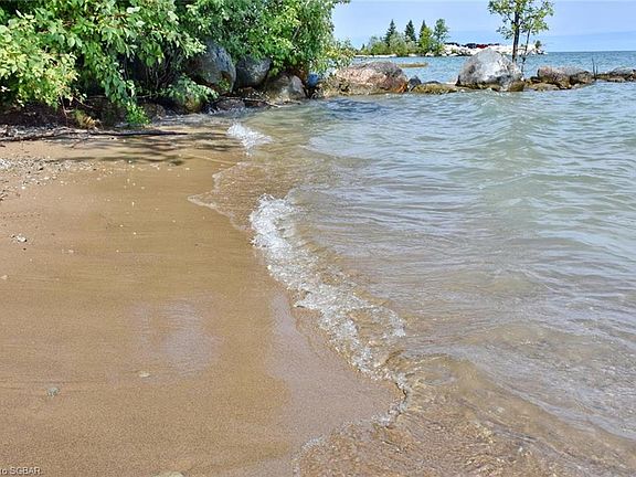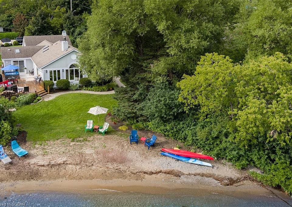 Rare Offering! Stunning Collingwood Waterfront Ranch Bungalow with it's own SANDY BEACH! Sunrise AND sunset views. Sandy & shallow gradual entry into pristine Georgian Bay, beautifully landscaped, with mature trees providing privacy for that rare cottage feel, in a convenient in-town location. Stroll to Collingwood's famous Sunset Point, parks, downtown shopping, farmers' market, theatre, gourmet restaurants, art galleries, & more. Cycle the renowned Georgian Trail to surrounding communities and beaches; hit the slopes at Blue Mountain Resort & Village, or hike the Bruce Trail, all only minutes away. Light-filled, well-maintained, offering plenty of flexible bedroom space, large sunrise/sunset-view deck with hot tub, self contained IN-LAW/GUEST SUITE w/separate entrance, parking & its own, private, south-facing deck. Two separate driveways provide ample parking. An excellent full-time or seasonal home. Truly, an entertainer's Mecca for all ages & sizes of family! Furnishings negotiable. Please note: Photos taken Fall 2020; there is a new home being built on the property next door. Long closing preferred, but negotiable.