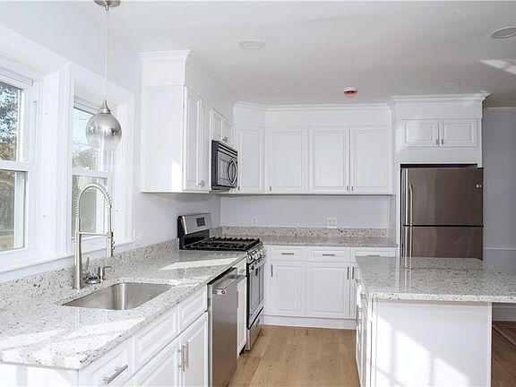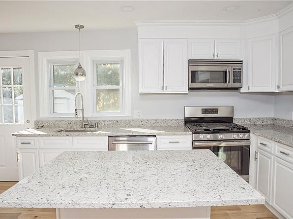 Renovated Cape in Warwick features gleaming hardwoods, sun-filled living room with fireplace, brand new kitchen with island open to dining room. Built in bookshelves in living room, half bath on first, full bath on second with 2 bedrooms. Lower level has finished recreation room or office with unfinished side for storage and mechanicals. Detached garage and deck of kitchen. Close to all amenities including highway access, schools, shopping and restaurants.