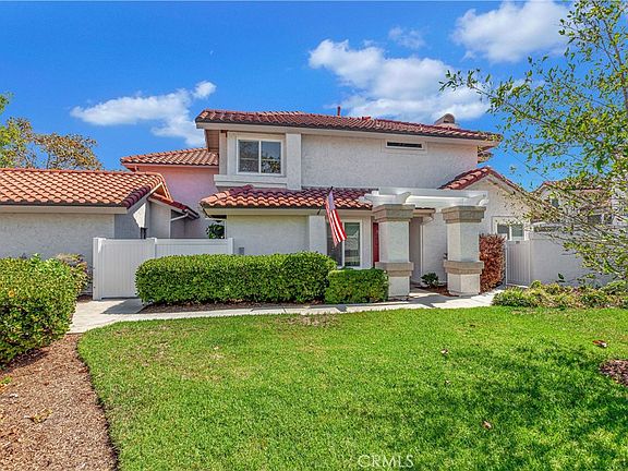 Welcome to your next home! Where do I begin with the description? Should we start with the fact that you are about a three-minute walk to the Santa Margarita Lake and Beach Club and can enjoy all the benefits of lake living? Or should I start with the fact that you have over 1,300 square feet of living space and TWO enclosed outdoor living spaces? So much to share! This Floramar beauty feels like a single-family home and even has a charming white fence around it! This amazing two-story, 2 bedroom and 2.5 bathroom home has been nicely upgraded featuring upgraded kitchen with granite counters, shaker cabinets with upgraded brushed nickel hardware, pull-out storage in cabinets, decorative paneled ceiling, recessed lighting and a large walk-in pantry. Separate eating area next to the kitchen with plenty of light and ambiance that will invite you to sit down with your loved ones and chat about the day. The spacious living room offers a cozy fireplace with ice fire glass, surround sound ready, recessed and artwork lighting, and crown moldings. Upstairs enjoy dual primary suites with private bathrooms and walk-in closets with organizers. The main primary suite additionally offers vaulted ceilings, balcony and dual vanity in the bathroom. Throughout you’ll find Brazilian cherry wood floors, multiple ceiling fans, plus newer vinyl dual-paned windows and sliders. Moving to the outdoors, we have the first outdoor living area located next to the kitchen and eating area. This is truly a private quaint area that could be used for gardening, exercise, meditation, relaxing or just enjoying the beautiful California weather. The second very large outdoor area is off the main living area on the other side of the home and this is where I imagine the BBQing would happen with a nice lounge area and even a table for eating. Or maybe you could make it a game area with a ping pong table! The two-car garage has plenty of storage with rafter access for extra storage and a driveway that can fit two cars as well. Washer, Dryer & Fridge included! Samlarc Parks & Recreation offer resort-inspired community with private access to features such as pristine landscaped grounds, 5 sparkling pools/spas, gym, playgrounds, luxury clubrooms, barbecues, picnic areas, boating, fishing & kayaking and more. Super close proximity to Award Winning Schools, Shopping, 241 Toll Road, Restaurants and more. FHA & VA approved and No Mello Roos.