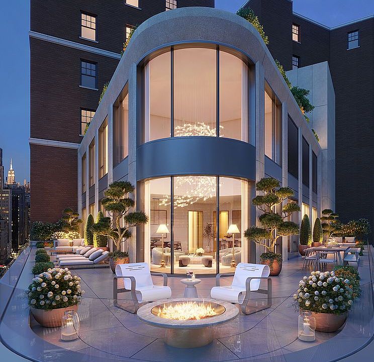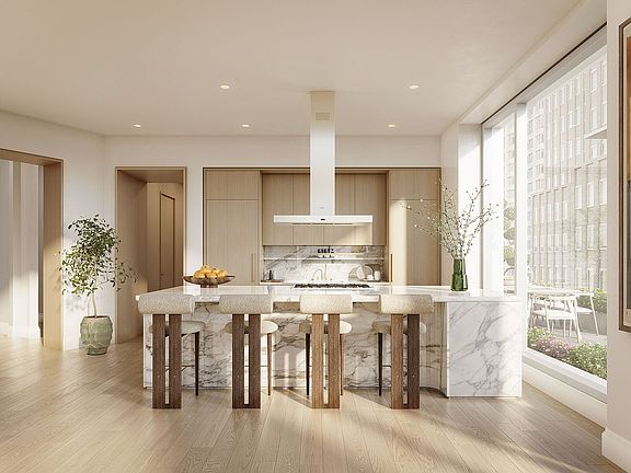 As seen in the October issue of Real Simple Magazine, this dramatic corner four-bedroom, four-and-a-half-bath duplex penthouse features a soaring double-height living room and a 1,470-square-foot wraparound terrace with sweeping north and west views of downtown icons. Designed for elegant entertaining, the open gourmet kitchen is outfitted with Gaggenau appliances, custom white oak cabinetry, and Breccia Grigio Eurasia marble countertops and backsplash.The main level includes a luxurious primary suite with dual walk-in closets and a five-fixture windowed spa bathroom with a sculptural soaking tub. Upstairs, a living room connects to split bedrooms, each offering a walk-in closet and en-suite bath, creating a perfect balance of privacy and comfort.