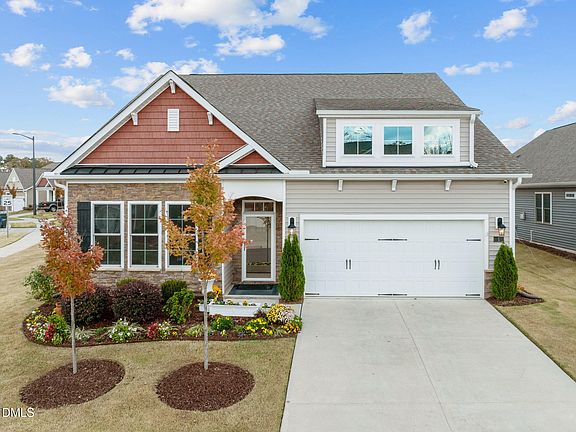 Experience refined living at 1 Parker Pond Court in Durham, NC—an elegant 4- bedroom, 3-bath ranch home built in 2022 on a sought-after corner cul-de-sac lot. The bright, open-concept layout features ten-foot ceilings, a welcoming family room with a cozy gas fireplace, and a spacious kitchen with gray quartz countertops, a large island, abundant cabinetry, and modern white fixtures. Your main-level master suite offers tranquility and convenience with a walk-in closet and beautifully tiled walk-in shower, while two additional bedrooms on the first floor and a fourth bedroom plus bonus room upstairs provide flexible space for guests or everyday living. The home boasts luxury vinyl, tile, and carpet flooring throughout. Step outdoors to a newly installed patio, ideal for entertaining or relaxing beneath mature skip laurel trees and evergreens that provide privacy and lush surroundings. The Bermuda lawn is well maintained, showcasing meticulous landscaping that enhances curb appeal and outdoor enjoyment. Spanning approximately 2,522 square feet, this residence also features a two-car attached garage, walk-in attic storage, central heating and cooling, ceiling fans. The screened porch invites you to savor morning sunrises, while the front of the home offers stunning sunset views. Located in Nichols Farm, a popular Durham neighborhood, you'll appreciate proximity to Brier Creek shopping and dining, RTP, RDU Airport, Downtown Durham, and Duke Hospitals—combining convenience with peaceful community living. Built by D.R. Horton and meticulously maintained, 1 Parker Pond Court offers luxury, functionality, and timeless style—making it a standout choice in Durham real estate.