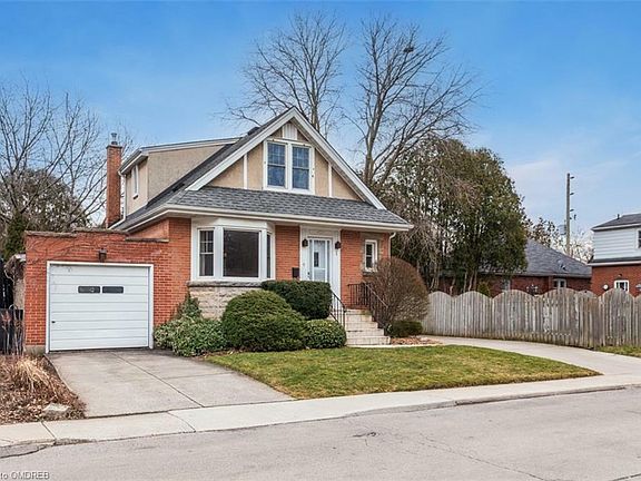 Location, location, location! Just steps to the Dundas Driving Park, schools, and all the shops and restaurants in downtown Dundas, this charming 1.5-storey brick home is not to be missed! With two good-sized bedrooms and a 4pc bath upstairs, the main level features a large living room open to the dining room and offers a bonus room complete with its own 2pc bath. This could be a third bedroom, den, or ideal home office. The kitchen walks out to a back deck overlooking beautiful gardens. And, with the basement finished too, there's nearly 1,600 sq ft of finished living space. With great ceiling height downstairs, it's a fantastic large family room featuring brand new carpet, fresh paint, and new 2pc bath. Making this property even more convenient, there are two concrete driveways, an over-sized single-car garage (approx. 1.5-cars deep), and both a patio and side entrance on the southern side of the house. The house has also been very well maintained with windows and doors replaced in 2011 and shingles replaced in 2015. Don't miss this incredible opportunity as homes with locations like this in Dundas very rarely come available!