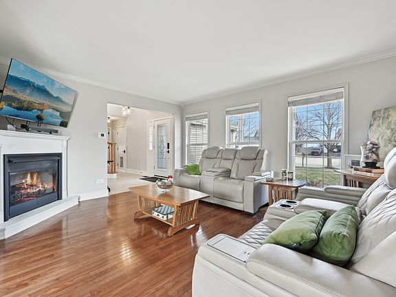 Beautiful 3bdrm/2.5 bath well maintained home with hardwood floors throughout on both upper & lower levels on large corner lot is ready for you to move in this spring! Large open entryway flows into all SS kitchen with newer cabinets (5yrs), Corian counters, coffee bar, wine refrigerator, center island & separate office nook opens to large family room with fireplace overlooking outdoor paradise! Family room area can also be closed off with brand new pocket doors with translucent finish allows lots of natural light while offering privacy for movies, overnight guests or additional office space for work from home arrangement. Kitchen eat-in area opens to family room with dual gas & wood burning fireplace and easy sliding glass door access to oversized newer stamped concrete patio overlooking wooded nature landscape backyard & shed- perfect for extra storage! Patio area includes additional electrical, great for adding a hot tub, outdoor projects, or fun outdoor lights. Open dining/living room area has 2nd fireplace, perfect for additional entertainment space & convenient updated adjacent half bath. Luxurious updated Primary Bedroom has large walk-in closet & private brand new updated ensuite bathroom! 2nd & 3rd Bedrooms share wide bright & sunny beautiful brand new updated full white & grey bath with granite counters. SS laundry room includes separate entryway- perfect for muddy paws or easy access to 2 car garage or added extended driveway (5yrs old). Plenty of extra side parking for multiple guests, or camper! Front outdoor porch has additional seating area, great for morning coffee, hanging out, or watching an evening sunset! Meticulous seller! New paint, all-new solid interior doors throughout the home for extra noise reduction, new electric, new downspouts, new Pella sliding glass door from the kitchen to patio, new blinds & brand new light fixtures! Close to Bolingbrook Park District playground- within walking distance behind the home, includes Lily Cache Sports Complex with soccer fields and paved walking path around the Lily Cache pond! Newer roof with shaker shingles, new stone exterior, new soffits, & new Upwood siding (2020). Newer furnace & AC- (2022) Water heater (2020). Nothing left to do but move in & enjoy!