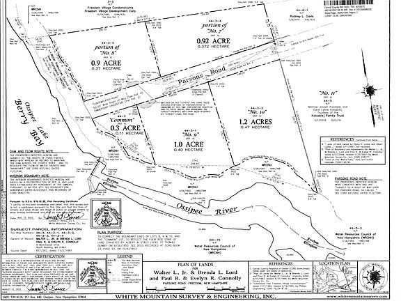 1-acre parcel with 198 ft of frontage along a gravel road, views of Berry Bay and Ossipee River. Perc testing done in 2025, marked by stake, see Horizon Engineering report for more details. Telephone poles line the gravel street for electric tie in. State owns first 50-60 Ft of frontage from water. Sellers have letter from WRCNH stating that access to water across their land is allowed but cannot modify state owned land with dock. Buyers/Buyer agents to due diligence. All 4 lots for sale combined under MLS #5067518. Common lot of 0.3 acres adjacent and closest to Berry Bay is available for purchase. Asking price is $20k.