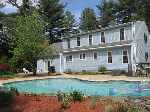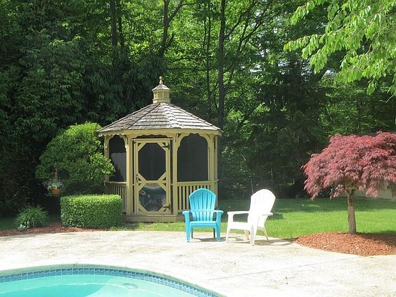 You will be delighted with everything this 3 bedroom 2 1/2 bath Colonial has to offer both inside and out. The yard is spacious and private - perfect for an active family with beautiful landscaping, a kidney shaped in-ground pool with water feature, large deck for entertaining, and yes, even a gazebo! The layout of this home has been thoughtfully designed for today's discerning buyer. A huge front to back Living Room with wood burning fireplace and hardwood flooring is sunny and bright. The open concept Kitchen and Family Room includes a 2nd fireplace (gas) and the sliders connect you to the deck and back yard activity. A Formal Dining Room with hardwood flooring is ideal for entertaining. The second floor consists of a large master bedroom with walk in closet and private bath, two additional bedrooms and 2nd full bath, and an office or craft room. The basement is also finished offering more space. CENTRAL AIR conditioning, irrigation system, central vac and much more.
