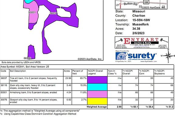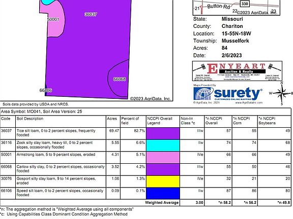ONLINE-ONLY AUCTION - Price Shown is the Starting Bid and Not a Listing Price! Property will not sell before the auction - Bidding begins March 17th and ends March 22nd at 7:00 pm (CST). TRACT 2 of 2 - 84 Acres m/l - Approximately 34 open acres, with the balance in heavy woodland. The Mussel Fork Creek runs through the East and central parts of the property providing year-round water sources for wildlife. The open areas are currently in grassland but have been in row crop production in past years. These areas could easily be converted back to cropland or be utilized for food plots. Soils consist of mostly Tice silt loam (0% to 2% slopes). There has been no recent logging on this property, and it is likely to have significant marketable timber. TERMS OF AUCTION: 10% of purchase price as Earnest Money deposit day of auction. Balance due upon closing within approximately 30 days. Buyer must have financing secured prior to bidding. Possession granted upon closing. Property is sold in AS-IS condition with no contingencies. Sale is subject to seller approval. Contact the auction company with any questions.
