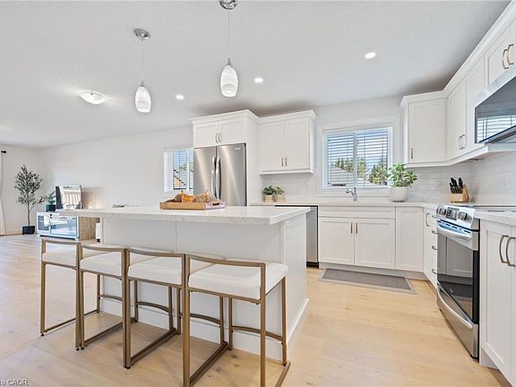 Corner lotOpen-concept main floorBright kitchenStainless steel appliancesLarge island with storageHardwood flooringPrimary suite