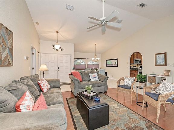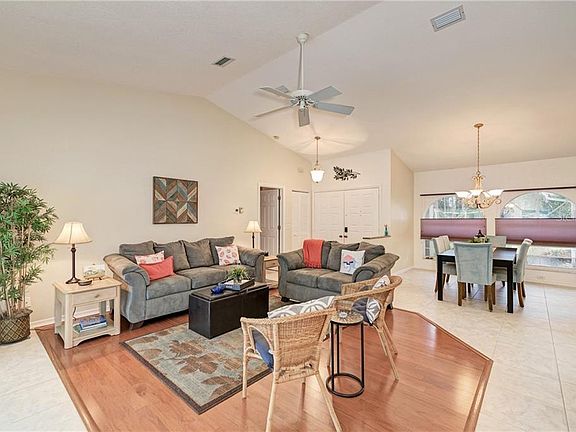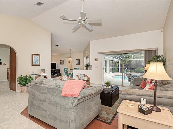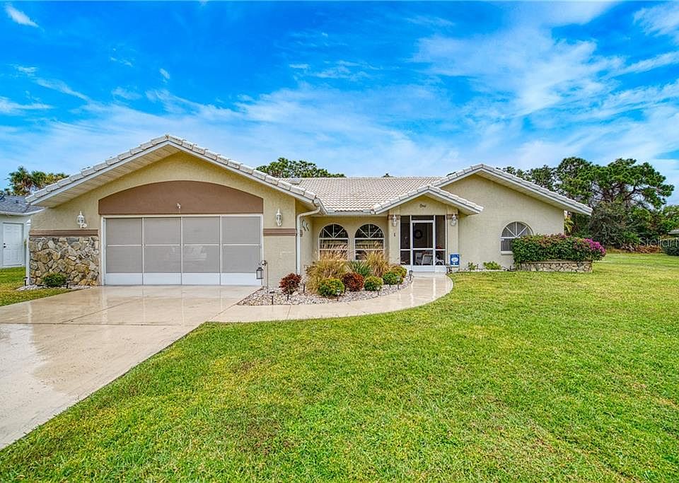 Desirable Pinehurst Pool Home in Rotonda West with a large private lot on a quiet cul de sac street. Open the double front doors to an inviting pool view. This home offers an open floor plan with a great room, dining room, family room, and beautifully updated kitchen with wood cabinets, quartz countertops and stainless appliances. The Master suite includes a walk-in closet, dual sinks, separate shower as well as a soaking tub. Sliders allow access to the lanai. The split bedroom plan includes two additional bedrooms, both with walk in closets sharing a bathroom that also accesses the pool. Relax pool side and enjoy the heated pool and spa (Pool Heater 2017) with a large area undercover, as well as, open area for sunbathing. Additional features include cathedral ceilings, skylights, screened front entry, screen sliders for the garage, new AC 2019 (10-year parts & labor is transferrable) and new Low Density Sprinkler System 2018. This home is close to all, beaches, shopping, golf, restaurants and boating.