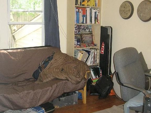 This is a very charming apartment set back from the street. It offersgreat space and light, and consists of a bedroom, walk-in closet, living room,eat-in kitchen and a study.}