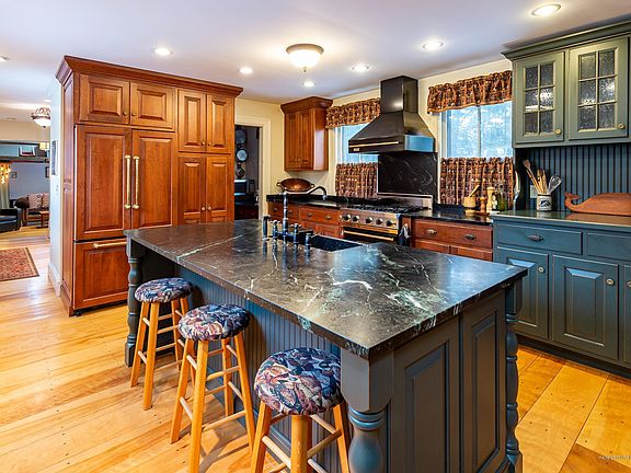 This captivating home, built by Ebenezer Rice in 1766, is located in the Kennebunk historic district. Upon entering the house, you notice the high-quality materials and detailed artistry utilized in the extensive renovation of this classic property. Wide native birch floors add light and space while contrasting beautifully with the deeper tones of the cherry cabinets and Vermont soapstone counter and sink. Traditional features such as antique exposed hand-hewn post and beam trusses, custom wood mantels with five working fireplaces, and crown moldings are tastefully matched with the contemporary amenities of premium stainless appliances (including a four-burner Viking gas range and hood), custom-designed kitchen, central air conditioning, contrasting cabinet colors and walk-in showers with custom glass. The courtyard is framed by a classic red post and beam barn and benefits from the mature hardwoods and stone walkway. The attention given to preserving the charm and character of this 18th-century gem combined with premium modern appointments will undoubtedly impress the most discerning buyer.Walking distance to Main Street and its amenities, this property offers all the benefits of coastal living and proximity to Portland and Boston. 2022-03-14