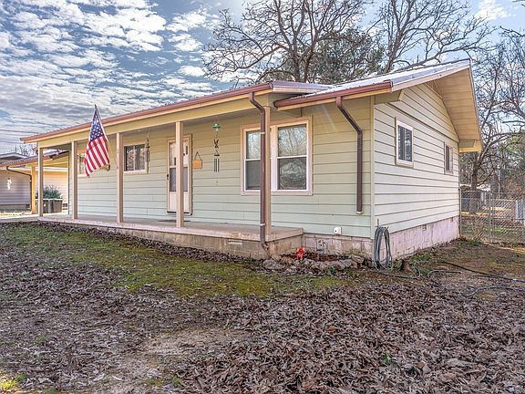 Welcome to Market 1 Poteau Dr in Cherokee Village, Arkansas situated on a level landscaped .44 acre lot with shade trees. This listing also includes a BONUS adjacent level .33 acre lot which is wooded and it fronts Pottawattamie Drive. This low maintenance home was built in 1970 and features vinyl siding and gutters. A metal roof was installed in 2021. The covered front porch is a great place to sit and relax and enjoy the beautiful sunset while unwinding from a busy day. The interior features 1131sf of well laid out living space which includes an open concept living/dining/kitchen combo. The three bedrooms have large closets and there is another large closet in the hall. The FULL BATH includes a shower/tub combo and a new commode. The HALF BATH has a new commode and is conveniently located next to the laundry room. The home has been repainted except for the bedrooms. The large backyard has a 6 ft chain link fence with double gates. There is a wood fence section installed at the end of the carport with a gate to easily access the backyard and the 10'x10' bld. Call to tour this home and take time to enjoy the 7 lakes and 2 golf courses and restaurants and shopping nearby.