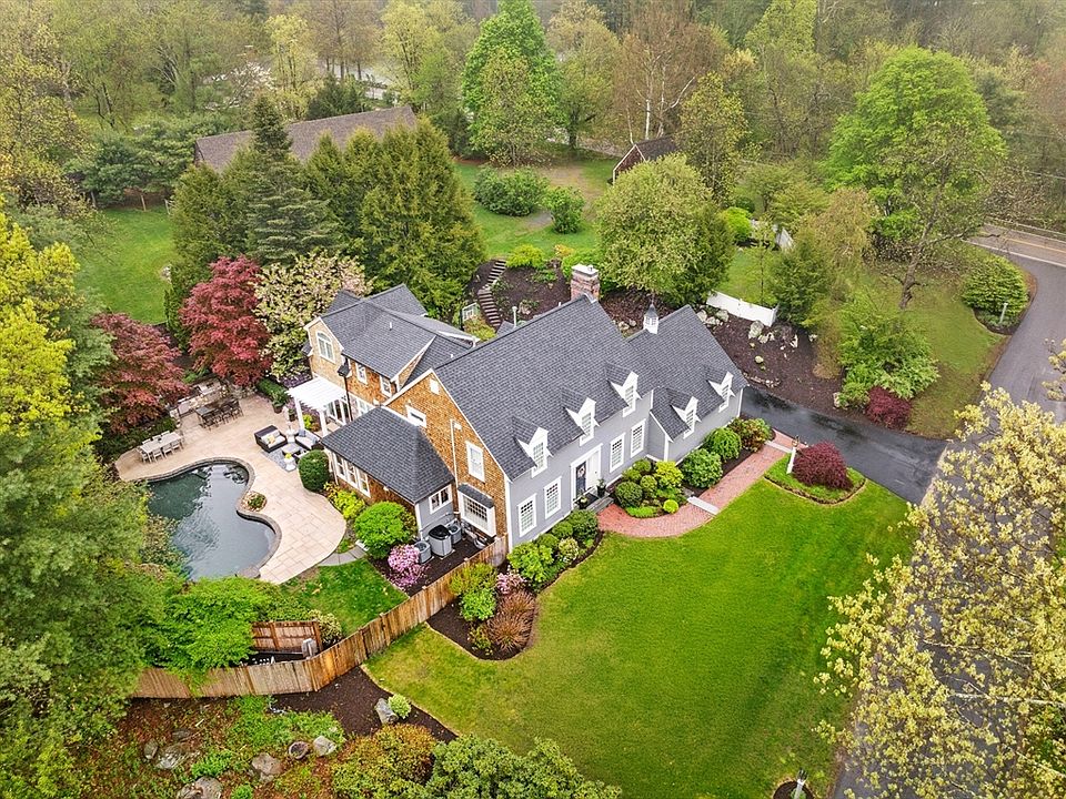 Experience timeless elegance in this stunning 5 bedroom Colonial. The inviting dining room leads to the gourmet kitchen that overlooks the vibrant landscaping, an entertainer’s dream. A generous first-floor office with a cozy gas fireplace is the perfect spot for productivity. The primary suite is a luxurious retreat, boasting an updated spa-like bath, spacious walk-in closet, and a sliding door that opens to the breathtaking outdoors. Upstairs, discover four additional spacious bedrooms, two full baths, a collaborative work space, and a laundry room featuring a custom wrapping station. The finished basement offers even more living space with a comfortable lounge, gym, kitchenette, second laundry area, and ample storage. Step outside to the private oasis featuring a sparkling pool, soothing waterfall, and built-in grill. Completing this property is a historic barn dating back to the 1850s, blending character with elevated comfort. This is not just a home, it’s your personal retreat.