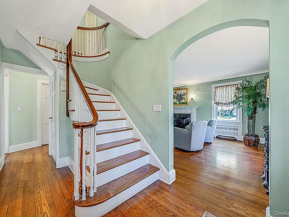 The first floor layout includes a charming 1940's foyer right as you walk through the door. A newly renovated kitchen that features sleek stainless steel appliances, Quartz counter tops and a gas cooking range, ideal for home chefs and entertaining. Throughout the home, you'll find rich hardwood floors that enhance its warmth and timeless appeal. A spacious dining room and a living room with a fireplace that adds to the inviting atmosphere. Included on this level is a half bathroom powder room and three seasons room at the back of the home, perfect for relaxing and enjoying views of the property.