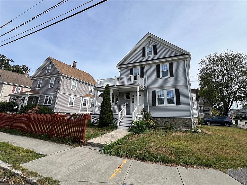 First floor features a living room, dining room, and updated kitchen with stainless steel appliances, granite counters, cherry cabinets, and ceramic tile floors, plus a half bath. Basement access offers storage and in-unit laundry with washer/dryer provided. Second floor has 3 bedrooms and a full bath. Hardwood floors throughout. Driveway fits 2 cars, and tenant has use of the side yard. Excellent location near Norwood Center shops, restaurants, banks, and public transportation including Washington St. bus stop and Norwood Center T. Strong credit and income required. No pets, no smoking.