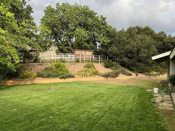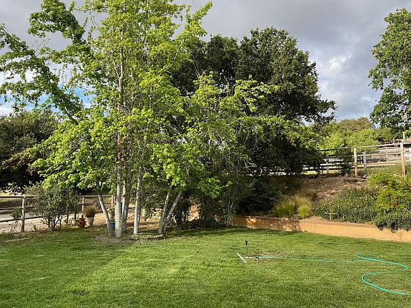 Four-bedroom two bath country home on 3 acres with room for 3 horses. Private location offering a tranquil setting with little maintenance. Formal living and dining rooms provide built ins and wood burning fireplace. Formal dining room and breakfast nook off kitchen. Great kitchen with tons of storage including pantry, huge center butcher block island and second sink, Professional grade Thermador dual oven, six burner stove, griddle and industrial hood, brand new dishwasher and sandstone counter tops. Lots of natural sunlight and views of the mountains and oak trees. Indoor laundry/mud room. Surround sound. Custom tile and wood floors (except in bedrooms). Owners' suite includes large bathroom with double sink, separate bathtub, glass enclosed shower and walk in closet. Lots of extra storage throughout home. Fenced backyard, separate dog run, exterior temperature-controlled wine storage and quarter bathroom. Two car garage. Includes electric, water and gardener. Pets welcome. Option for horses (up to three with extra charge). Avail July 1st . $6,750 mo (pet dep additional) $8000 deposit. This property has a guest house that is rented separately