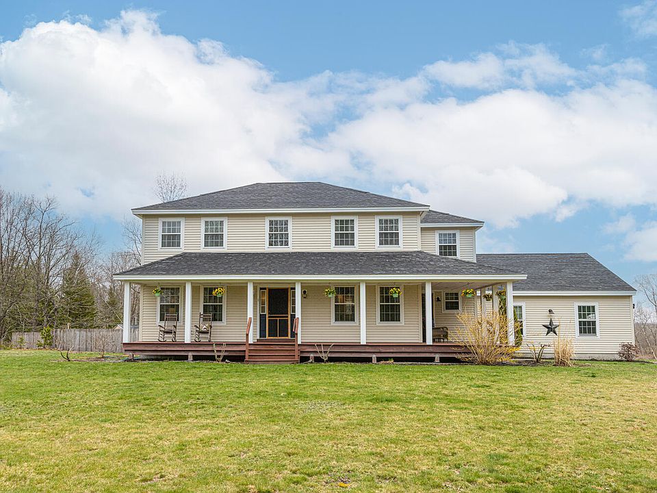 Built in 2014, this sun filled well appointed home perfectly sited on 3.75 private acres of open fields and woods. Enjoy amazing Eastern sunrises from the large primary bedroom with a deck or the large first floor deck nicely situated for entertaining. The large wrap around farmer's porch provides a western exposure for amazing sunsets. 3 bedrooms, 2.5 baths with hardwood floor primary bedroom suite. Recent updates include hardwood floors, carpet and kitchen. The very efficient Baxi propane heating system oversized 2 car garage make this home a pleasure to show.