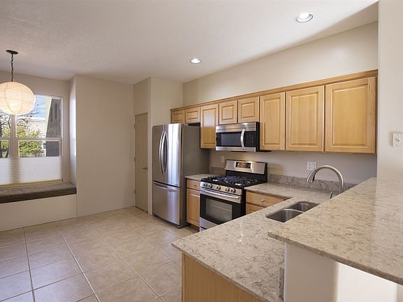 This recently updated Yarrow model on a premium corner lot is not to be missed! This home offers a split floor plan with a generous Master suite including a walk-in closet, soaking tub, and sliding glass doors opening to a side courtyard with a privacy wall. The home was just updated with new quartz countertops, paint, carpet, and brand new stainless steel appliances & under cabinet lighting. The open kitchen/living room concept allows for a great entertaining space, and glass patio doors bring in lots of natural light to the living area and lead to a flagstone path to the fully-landscaped yard on drip irrigation, with mature plantings throughout. The flagstone patio with rock fountain is perfect for outdoor dining and entertaining. 10 year transferrable warranty remaining on roof. Make sure not to miss the 3D virtual tour!
