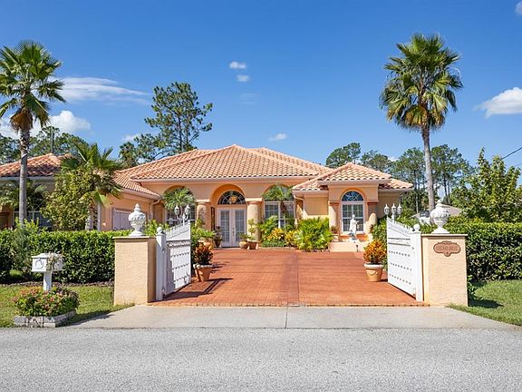 Welcome to this exceptional residence offering the perfect blend of luxury, comfort, and style. Located in the heart of Palm Coast, this beautifully maintained split-plan 3-bedroom, 3-bath home is sure to impress. From the moment you arrive, you'll be captivated by the elegantly paved driveway, tile roof, and immaculate landscaping. Step inside to soaring 18 ft tray ceilings and abundant natural light that flows through the open-concept layout, creating a bright and inviting atmosphere. The chef’s kitchen is a standout feature, complete with sleek stainless steel appliances, generous counter space, and a layout that’s ideal for both cooking and entertaining. The open living area includes a remote-controlled gas fireplace with a marble surround, perfect for cozy evenings or gatherings with friends and family. This home offers both a dedicated office and a separate study, providing plenty of space for work, hobbies, or relaxation. Throughout the home, you’ll find updated, high-end ceiling fans and modern lighting fixtures, as well as plantation shutters for a touch of timeless elegance. The luxurious primary suite is a private retreat, featuring a spacious layout and french doors that lead out into the Florida Room. You will also enjoy the Primary bathroom’s oversized soaker tub, separate walk-in shower, dual vanities and a custom-designed walk-in closet that is sure to dazzle! Both guest bedrooms boast high ceilings, custom plantation shutters and large closets. The third bathroom features a safe-step walk-in tub and opens to the converted Florida room, a true highlight of the home. With six sets of 9-foot sliding glass doors and over 60 feet of windows, this space is filled with natural light and offers beautiful views of the private backyard—perfect for relaxing or entertaining. Outdoors, you'll enjoy a fully fenced yard with a generous patio area, ideal for gatherings, barbecues, or simply soaking in the Florida sunshine. *Additional upgrades include: *Recently installed: 5-ton A/C unit with UV filtration system. Air conditioned garage to include a stand-up attic for more storage options. *Retractable garage screen enclosure *All bedrooms possess indirect overhead lighting for evening ambiance *Digital Rainbird Irrigation system/timer *Electrical system inspection and preventative maintenance completed *Driveway pavers were recently pressure washed, stained and sealed *High End Smart security system installed for extra protection *Available and negotiable furnishings to make moving in even easier. This home truly has it all—luxury, functionality, and style—and is move-in ready for its next proud owner.