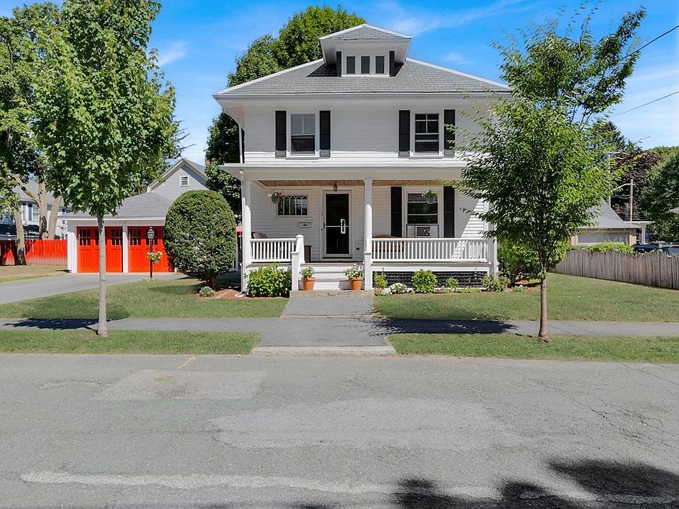 Beautiful Colonial in desirable neighborhood is just what you are looking for! 4 BR gem is lovingly maintained/updated by owner and pride of ownership shines throughout. The inviting front porch greets you upon arrival and is relaxing place to enjoy sights and sounds of this charming tree lined street.Foyer is typical Foursquare Craftsman Style Colonial w/period detail incl. leaded windows,carved balusters,stairway with landing and original front door.Open concept first floor living w/ hardwood. Newly remodeled generous kitchen is loaded w/cabinets, has recessed lighting, custom lighting , granite countertops, stainless appliances, new windows, eat in area and access to back porch and outdoor patio and entertaining area.Upstairs houses 4BR and beautifully updated full bath.Spacious home has potential expansion option in walk up attic. Finished lower level is flex space. Updated gas heat system, electric, HW tank and plumbing. Nice yard and 2 car garage complete this special offering.