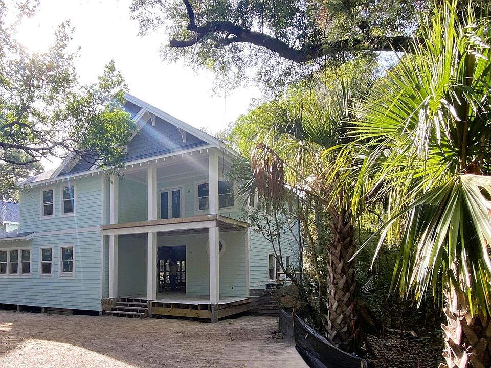 Holiday Incentives totaling up to $150K. Up to $50K towards custom cabinetry and designer lighting. Up to $50K in chef-grade appliances and plumbing fixtures. And up to $50K in home furnishings. A luxurious maritime retreat centrally located on Bald Head Island, just minutes from beaches, marina, golf, shopping and dining. It has 3193 sq ft of indoor living space (2878 house/315 crofter) with 5 well-appointed bedrooms, 6 bathrooms and 2000 sq ft of outdoor living space approved for optional pool. Meticulously designed using the finest materials for uncompromising quality carefully curated to include custom finishes and designer fixtures. From the grand entry on the 1st floor you are greeted by gleaming hardwood floors, 10 ft ceilings and an open floor plan flowing through living spaces to a wall of French doors opening to outdoor living. Kitchen includes custom cabinets/island, gas stove with pot filler, wet bar, wine cooler and pass-through window opening to outdoor seating. There's also a flex room, 1/2 bath, closet and utility room. 1st floor primary suite has private entrance, walk-in closet and ensuite with custom shower with built-in marble seat and soaking tub for a spa like experience. The 2nd floor primary suite is NEXT LEVEL LUXURY with a walk-in closet and 2 PRIVATE ENSUITE BATHROOMS. 2 additional bedrooms on the second floor. All baths feature marble/stone showers with built-in marble seats. 2nd floor also includes laundry room, linen closet, attic access and wide hall leading to 2nd floor covered porch. Detached crofter has parking for 2 golf carts and guest suite with custom marble bathroom on 2nd floor. The exterior boasts generous outdoor living spaces: multi-tiered deck, 2 covered porches, screened/covered porch with trellis (removable screens), built-in flower boxes, optional in-ground pool, TV, bar seating and shower. The lush landscape provides beauty and privacy from all views.