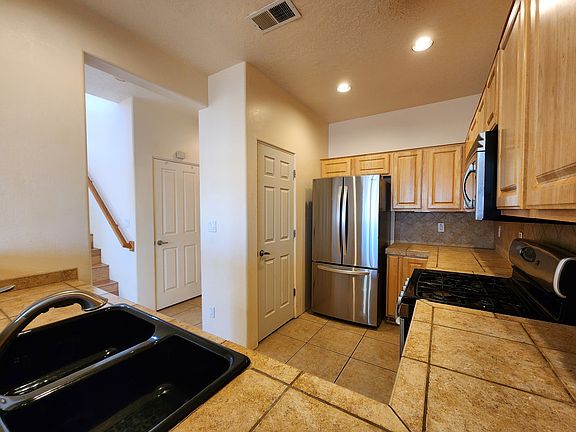 Discover your new home in the picturesque Rancho Viejo South Neighborhood of Santa Fe. This charming townhouse offers a perfect blend of comfort and convenience, featuring two bedrooms plus an office and two and a half bathrooms, all within a spacious 1,640 square feet of living space. Step inside to find a welcoming interior with a high ceiling in the living room, creating an airy and open atmosphere. The gas fireplace adds warmth and ambiance, perfect for cozy evenings. The home boasts laminate and tile flooring throughout, combining style with practicality. The master bedroom is a true retreat, complete with a private deck offering stunning mountain views. Enjoy the luxury of a walk-in closet and a well-appointed bathroom featuring Jack and Jill sinks. The additional bedroom and office provide versatile spaces for family members or guests. Comfort is assured year-round with central air-conditioning and gas forced-air heating. The two-car garage offers ample space for vehicles and storage. Outside, a beautifully landscaped, walled patio provides a serene setting for relaxation or entertaining. Rancho Viejo is a nature lover's paradise, with over half of the community dedicated to lush open spaces and parks. Residents can enjoy miles of scenic paved trails, perfect for walking or biking while taking in the breathtaking mountain vistas. The neighborhood boasts six parks with play equipment and active playfields, as well as tree-lined pedestrian streets that enhance walkability. The community's Village Centers, including the vibrant hub at 55 Canada del Rancho, feature beautifully landscaped plazas, convenient shops, and lively gathering spots for community events. Experience the perfect balance of natural beauty and modern living in this exceptional Santa Fe townhouse. Brant Goodman, Qualifying Broker