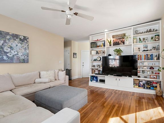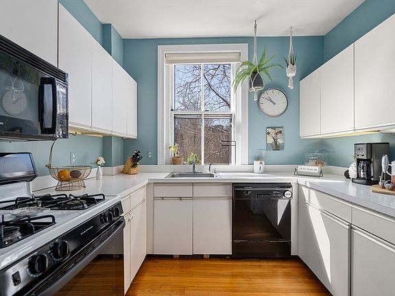 Rarely available end-unit duplex in the heart of Washington Square, this light-filled, turn-of-the-century Back Bay–style home offers three exposures, soaring nine-foot ceilings, oversized windows, hardwood floors, and two parking spaces. Blending timeless architectural charm with a layout suited for modern living, the main level features a spacious kitchen with ample storage, a gracious living room with fireplace and deck access, and a versatile dining room or den. A stunning 12x18 corner bedroom suite with a fireplace and beautifully renovated en-suite bath completes the floor. Upstairs, natural light floods the staircase leading to a generous primary suite with a walk-in closet, renovated bathroom, and in-unit laundry. Ideally located near Waldstein Park, Star Market, shops, restaurants, and both the B and C Green Lines.