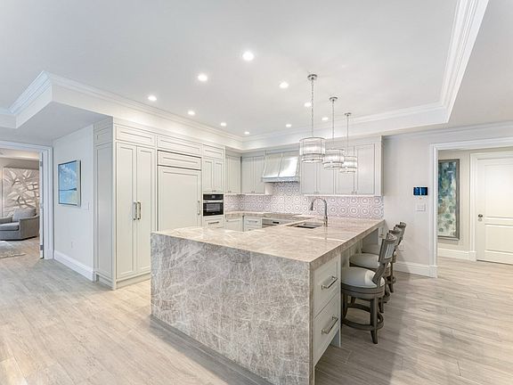 Discover refined luxury living at The Residence Club, where sophistication meets comfort in this exceptional two-bedroom, two-and-a-half-bathroom condominium spanning 2,035 square feet. This stunning residence underwent a complete transformation in 2024, elevating every detail from builder-grade to boutique elegance. The heart of this home showcases a custom kitchen featuring Wolf cooktop and range, Miele convection oven and microwave, plus Bosch dishwasher, all complemented by leather-honed countertops and bespoke cabinetry. The thoughtfully designed laundry room doubles as a butler's pantry with floor-to-ceiling storage, wine refrigerator, and additional refrigerator drawers. Luxurious bathrooms display exquisite marble and tile work paired with premium fixtures throughout. Convenience extends to the lower-level garage with prime parking accommodating both vehicle and golf cart, plus climate-controlled storage space. The Residence Club represents Ocean Reef's pinnacle of luxury condominium living, nestled within one of Florida's most prestigious communities. This exclusive enclave offers unparalleled security and engineered comfort, featuring an impressive 18,000-square-foot clubhouse with concierge services and state-of-the-art fitness center. Residents enjoy first-class private dining with professional chef services, wine storage, movie theater, and screening room. The outdoor heated pool, wellness spa, and salon provide resort-style amenities steps from your door. A full-service generator ensures uninterrupted comfort throughout all common areas and residences. The Ocean Reef Club neighborhood offers world-class golf, pristine beaches, and exclusive marina facilities, creating an unmatched lifestyle destination. This turnkey residence represents the ultimate in carefree luxury living where every detail has been meticulously crafted for discerning homeowners.