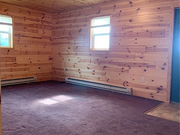 Spacious bedroomElectric stoveFront porchKnotty pine interiorEat in kitchen