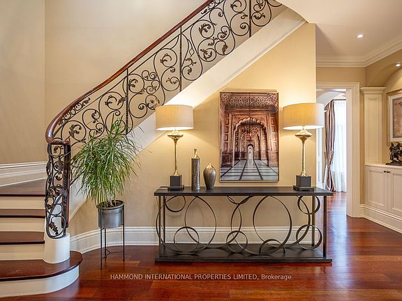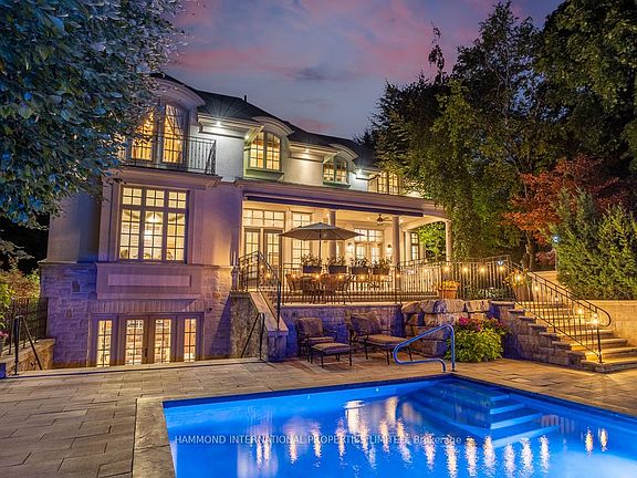Allow your dreams to come true in this beautifully appointed and exquisitely maintained residence. Designed by renowned architect David Small, this home showcases the highest calibre of craftsmanship, detailing, and finishes throughout. Elegant formal rooms offer multiple spaces for gathering, entertaining, and hosting family and friends. The main level features a warm and inviting family room, a refined library, a gourmet chef's kitchen for the culinary connoisseur, and an elegant dining room ideal for intimate dinners or grand celebrations. The second level presents a luxurious owner's suite along with three additional junior suites, each thoughtfully designed for comfort and privacy. The lower level extends the home's entertaining potential with a spacious recreation room, a temperature-controlled wine cellar, a wet bar, nanny's quarters, and a walk-out to the rear gardens and pool. Step outside to your private terrace overlooking the pool and lush, mature gardens - a setting perfect for alfresco dining, relaxation, and enjoying your own personal Shangri-La under the moon and stars. Serene, professionally landscaped grounds offer quiet seclusion among a canopy of majestic trees. Ideally situated just a short stroll from the private St. George's Golf & Country Club, and moments from boutique shops, bakeries, restaurants, some of the country's finest schools, and Toronto Pearson International Airport. A world of magnificence awaits.