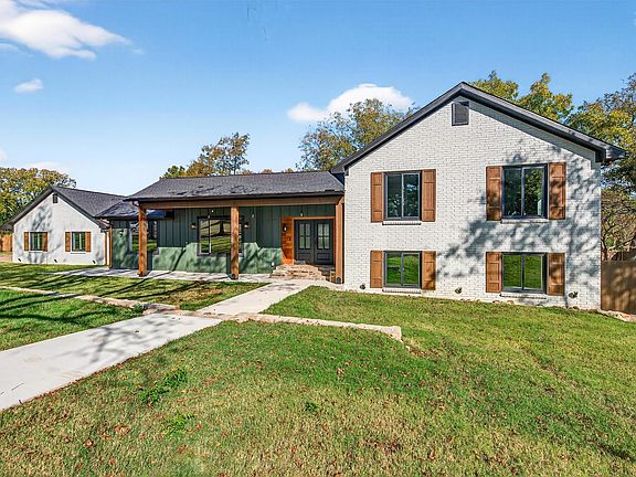 Step into timeless elegance with this essentially new 5-bedroom, 4.5-bath home, completely reimagined from the ground up. Gracefully situated on two wooded acres just outside the city limits, this stately residence underwent an extensive remodel, from underground to the roof, offering the peace of mind and modern comfort of new construction with its original charm. Boasting over 4,000 square feet, a versatile split-level floor plan with multiple living areas and a walk-out basement, perfect for a media room, game room, or private retreat. From the grand iron front door to the oversized 3-car garage, every detail reflects high-end craftsmanship. The kitchen and sitting room feature a vaulted ceiling with an exposed wood beam, adding warmth and architectural charm. Solid wood flooring flows throughout the spacious home, with a striking chevron pattern in the kitchen. The gourmet kitchen includes a gas range with vent hood, refrigerator, and all-new appliances. The breakfast area offers serene views of mature trees in the backyard and includes a butler’s area for added convenience. The spacious pantry is tucked inside the light-filled laundry room, conveniently located off of the kitchen and includes a half bath. The primary suite is a true sanctuary with a cozy wood burning fireplace, private patio access, and a spa-inspired bath featuring a soaking tub, walk-in shower, and custom closet with built-in vanity. A second primary suite provides flexibility for multi-generational living or guest accommodations. Additional bedrooms are generously sized and thoughtfully placed throughout the home. Enjoy the expansive courtyard, ideal for a future outdoor kitchen and entertainment space. Located between the rapidly growing cities of Sherman and Denison, and 15 minutes from Lake Texoma, this home offers privacy without sacrificing convenience. HOA includes water and sewer. Truly move-in ready. A rare blend of luxury, function, and location. Schedule your private tour today.