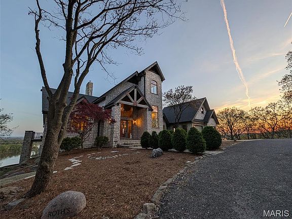 If you want every day to feel like you’re on vacation – this is the home for you. This 3 Bedroom, 2 Full Bath, 2 Half Bath offers breathtaking views of the Illinois/Mississippi river in almost every room on 5.01 wooded acres nestled atop the bluffs. The main lvls added lofts are perfect for an office/lounge area and the tower loft makes a great artist's loft or telescope area. The Palapi Brazilian back deck hosts the perfect place for a morning coffee or evening drink. Massive 31’ vaulted ceilings in the great room w/fireplace. Open kitchen/dining along with a coffee bar area – all appliances stay. Main floor primary bedroom suite w/walk-in closet, shoe closet, bath w/separate tub/shower. Venture downstairs to the perfect spot to host your next event, w/views from the family room w/fireplace and wet bar to the billiards room w/screened patio. 2 bedrooms and a full bath are in the lower lvl as well. All showings to provide preapproval/proof of funds & be accompanied by listing agent. Additional Rooms: Sun Room