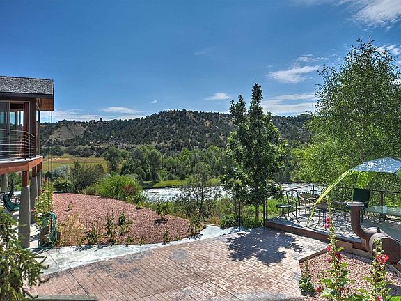 Experience tranquility on the Animas River from this exceptional property south of Durango. The home sits up above the Animas and the outdoor living space and large windows allow you to enjoy the river valley while watching bald eagles, blue herons, deer, and elk. An easy path down to the river offers an incredible area for seating and access to your own private island when the flow permits. The home is as special as the piece of land it sits on. Enter through the beautifully landscaped courtyard and covered patio in to the home and you’ll be instantly drawn to the huge windows which showcase the view. A large open great room features a spacious kitchen with corian and granite countertops, plenty of cabinet space, and seating at the island, a dining area, wet bar, and living room with a gas fireplace. This area offers access to two outdoor deck spaces, with new Trex decking, as well as an enclosed sun room, perfect for taking in the beauty of the area. Finishes like travertine tile, aspen tongue and groove ceiling, and custom wood doors paired with modern cabinets create a warm artistic blend that flows with the unique setting. Set up for all main level living, you’ll also find two bedrooms, a full bathroom, and a large primary suite on this floor. The primary suite has access to the deck with a newer hot tub for enjoying evenings under the stars and listening to the river. There is also a gas fireplace for cozy winter nights, and an large 5 piece bathroom with a soaking tub, large shower, and a double vanity. To round out this level, you’ll also find a sunny office/overflow room, and a large and efficient laundry room with access to the 2 car garage. Use the stairs or take the elevator to the lower level, with a second living area with a gas stove, huge storage closet, another room and full bathroom. Also on the lower level is a mudroom/gear storage room with a dog wash. There is access to the lower patio and yard which is fully fenced, and the owners have also set up a smaller dog run area which can remain in place if desired. In front of the 2 car garage is a covered carport, which is access of off the circular driveway. Upon first entering the gated property, you’ll see the 80x20 barn which has 50 amp service for an RV, and just off of the barn is a fenced in area for horses and hay storage. Irrigation from the Animas Ditch provides ample water for keeping the grounds green, alfalfa growing for the horses, and the many fruit trees healthy. There is so much to love about this one of a kind property, don’t miss this opportunity for extraordinary Colorado riverfront living.