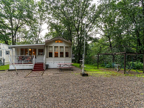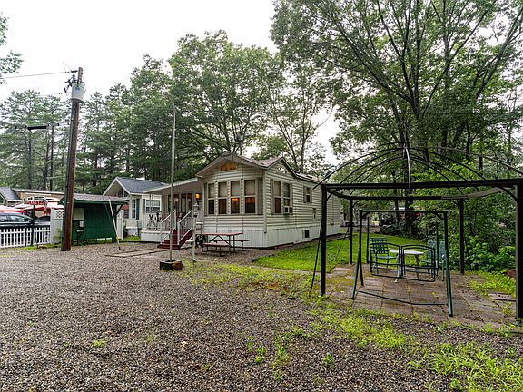 Are you looking for your Maine summer campground-style retreat? Look no further than this Platinum Edition Covington park model mobile home with all the bells and whistles, located in a West Kennebunk RV resort with so many amenities plus Mousam River access with a dock! Situated on one of the largest and most centrally located sites in the YankeeLand resort, this park model is only steps away from the pool, pavilion, clubhouse, and laundry facilities and more. A one-owner unit that was delivered new to this site, this deluxe park model offers cathedral ceilings throughout, a queen size bedroom, full bath, kitchen with a full size range and refrigerator, ceiling fans, living room with vault windows, a surround sound system for the whole unit, plus an enormous 12' x 25' attached sunroom with a front and back porch, large dining table and a queen sleeper sofa. This is being offered fully furnished, right down to the grill, dishes, and silverware! The site this unit sits on is one of the best in the resort, with a picnic table patio, gazebo patio with swing & patio furniture, 2 generously oversized parking spots, a wooded buffer running along one side, plus a two-section large shed behind the unit. Golf carts and pets are welcome along with your visitors, and there's many events throughout the season to take part in: golf cart parades, movies, food trucks, and even Christmas in July. The season runs from May 1st to Columbus Day, and with your seasonal site rental you get leave your summer getaway in place for no hassle camping. Come take a look and see how close this is to all Kennebunk and the southeast coast of Maine has to offer!