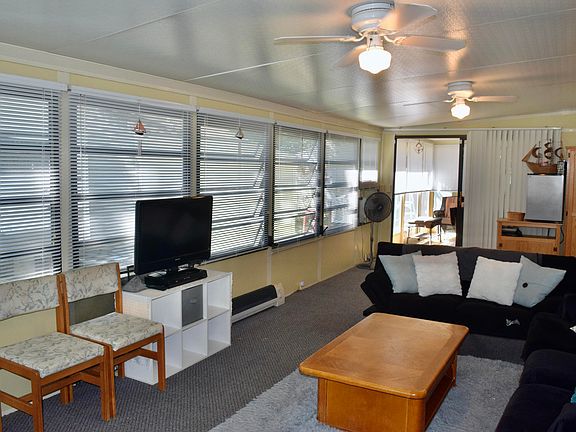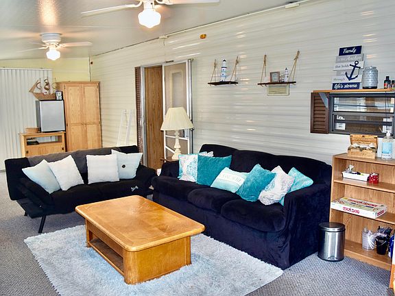 Looking for a seasonal getaway in a coastal town that offers privacy and convenience? This well-maintained three-bedroom unit is the LARGEST ON THE MARKET! Enter the home to an expansive, bright, airy family room ready for game nights, movies, and relaxation. Whip up apps in the kitchen with a recently updated backsplash before going to the backyard tiki bar for an evening beverage. Enjoy your morning coffee on the front porch or on your private screened-in porch in the back, where you can enjoy the peaceful sounds of nature. Three private bedrooms (one of which has four built-in beds) and a full bath with new tiling complete the unit. The room off the kitchen currently has a day bed, but a table can be placed there to make it an eat-in kitchen. LAUNDRY IN UNIT (rare). Backyard fun with the tiki bar, firepit, and outdoor table where you can share your favorite activities from the day while enjoying a BBQ. The park offers plenty of amenities, including an in-ground pool, Pickleball, event space, and access to the Mousam River for fishing and kayaking. Just a short ride to beaches, shopping, dining, area attractions and more! A must-see! Own a slice of Vacationland for the rest of this season and many years to come!