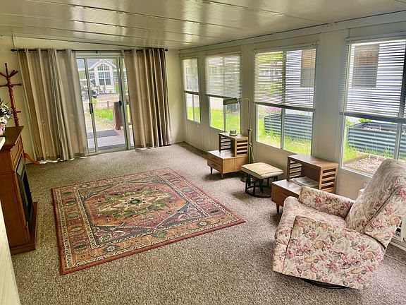 Step into the serene ambiance of this RARE STICK BUILT UNIT nestled in the heart of Yankeeland, exuding all the cozy cabin vibes you crave. Boasting one spacious bedroom adorned with ample storage, this abode offers a retreat-like atmosphere. Bask in the sun-drenched Florida Room, the only manufactured component provides an oversized, airy space perfect for relaxation. The open-concept kitchen beckons with its full-sized appliances, generous counter space including a peninsula, and a welcoming layout ideal for entertaining. Escape to your PRIVATE OUTDOOR SHOWER (the only one in the campground), perfect for rinsing off sandy summer days before entering the home. A full bath adds convenience to this charming retreat. Outside, discover a tranquil oasis for savoring morning coffees, evening drinks, or meals with loved ones. At night, gather around the fire pit to marvel at shooting stars against the backdrop of the night sky. Nestled in a quiet cul-de-sac near the river, this community offers an array of amenities, including a pool, arcade, playground, basketball courts, laundry facilities, a large pavilion, and a rec hall, ensuring endless entertainment options. Plus, with its pet-friendly policy, furry companions are warmly welcomed. Take your chance to start crafting unforgettable summer memories in this enchanting retreat!