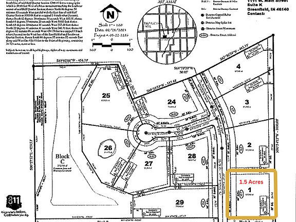 Welcome to Rockfield Estates, a new custom home community, New Palestine School District, located between Greenfield Indiana and New Palestine Indiana within Southern Hancock Schools. This neighborhood provides direct access to the Pennsy Trail, a paved and maintained walking and biking trail that allows convenient outdoor recreation. Rockfield Estates offers 1.5 to 2 acre lots with options that include cul-de-sac locations, pond views and tree-lined settings. The community features natural gas, streetlights and sidewalks. Soil testing has been completed, and well and septic are required. Lot 1 includes 1.5 acres with a private rear setting and an established landscape buffer. Community guidelines allow fences and 2400 square foot pole barns. Minimum home size is 2400 square feet for a one story and 2600 square feet for a two story, with at least 1600 square feet required on the main level. Vinyl siding is not permitted. Approved builders are required. Joyner Homes is currently the approved builder for Rockfield Estates and can build custom plans or offer their available designs. Other builders may be considered with developer approval when submitted at the time of the lot offer. Additional lots are available and reservations may be made while inventory remains available.
