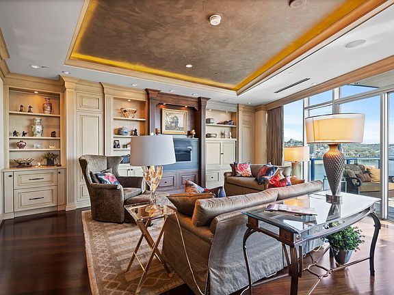 - Kitchen Island, Walk-In Closet(s), Open Floorplan, Granite Counters, Eat-in Kitchen, Double Vanity, Crown Molding, Chandelier, Bookcases, Built-in Features, Elevator, High Ceilings, Natural Woodwork, Recessed Lighting