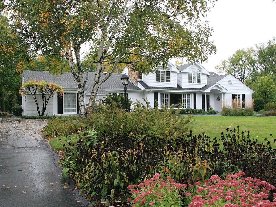 On a private lane sits this sophisticated exceptionaly spacious Cape Cod. A magnificently landscaped 1 AC setting. Beautiful views, terrific room sizes, abundant sunlight, spectacular dining room!. First floor master suite with luxurious new bath, large, private office & laundry/mud room all on 1st floor. Sky lighted top of the line kitchen opens to family room with fireplace & doors to patio & lush lawn. 2 addtional bedrooms & bath on 2nd floor, 1 addtional bedroom & bath on 1st floor. Total of 4 bedrooms & 3 1/2 baths. Finished rec room in basement. Neighborhood Description Sunset Ridge School is just across the street and Middlefork is about 3 blocks away.