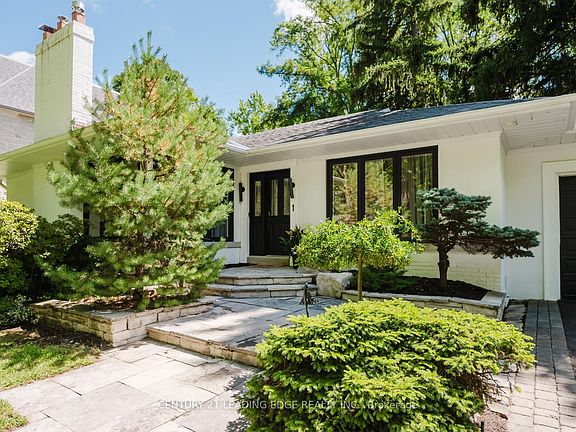 Exceptional opportunity in one of Torontos most coveted enclaves of Humber Valley Village. Whether you're a first-time buyer planning for future expansion, an empty nester seeking a low-maintenance lifestyle, or a builder searching for a premium lot, this property delivers. Rarely offered 70' x 125' lot, a true gem in this exclusive, family-friendly neighbourhood, offering endless potential in an unbeatable location. This contemporary ranch bungalow exudes curb appeal with a crisp white-brick exterior, new black-trim windows, custom stone entry, and lush perennial gardens framed by mature ornamental trees. Fully updated with designer-inspired finishes, the home features new flooring, pot lights, granite counters, and custom built-ins for effortless, modern living. The sun-filled main floor boasts an open-concept living area with a gas fireplace, a chefs kitchen with breakfast nook, and a window-wrapped dining room with heated floors and walkout to the private backyard. The spacious primary suite impresses with a vaulted ceiling, a stunning new ensuite, and a walk-in closet. Two additional bedrooms and a renovated main bath complete the main level. A fully finished basement offers versatile bonus space with a recreation room and 2 additional bedrooms. Step outside to your secluded backyard oasis featuring a stone patio, mature gardens, and a multi-purpose garden shed, perfect for additional storage, a home office, or a private gym. Just steps to the top-ranked schools, parks, golf, shopping, and transit, this is urban living at its finest.