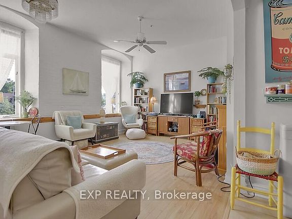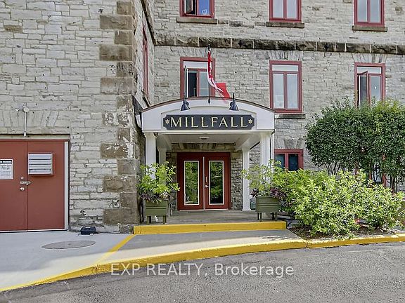 Step into Unit 503 at Millfall Condominium and feel instantly at home. This two-bedroom, one-and-a-half-bath suite on the island welcomes you with its unique style and open, inviting atmosphere. The kitchen is a real highlight: think heated tile floors, tons of cabinets, a big island with seating, and stainless steel appliances - perfect for cooking up a meal or gathering with friends. The open dining and living room area offers plenty of options for arranging your favourite furniture and making the space your own, all under soaring ten-foot ceilings and bathed in morning sunlight thanks to large east-facing windows.Move into the primary bedroom and you'll find a wall of closets and a private ensuite bathroom. The tower room, with its three walls of windows, gives you a panoramic view. Add a door and its a fantastic guest room, or leave it open for your office or creative space. Imagine sipping your coffee in the window nook, soaking in views of the falls.Life at Millfall means more than a beautiful condo. Residents enjoy well-kept grounds along the Mississippi with kayak storage, a gazebo for Friday evening happy hours and barbecues, plus parking for both owners and guests. Once a bustling textile factory back in the 1800s, this charming heritage building was transformed into condos in 1985. Enjoy top-notch amenities like an exercise room, storage lockers, a workshop, a library, a recreation room, and a rentable guest suite.Looking for local adventure? Downtown Almonte is just a short stroll away, filled with coffee shops, restaurants, and boutiques, or explore the nearby Ottawa Valley Recreational Trail. Come see for yourself why the Millfall community is so vibrant and inviting- there is truly something here for everyone.
