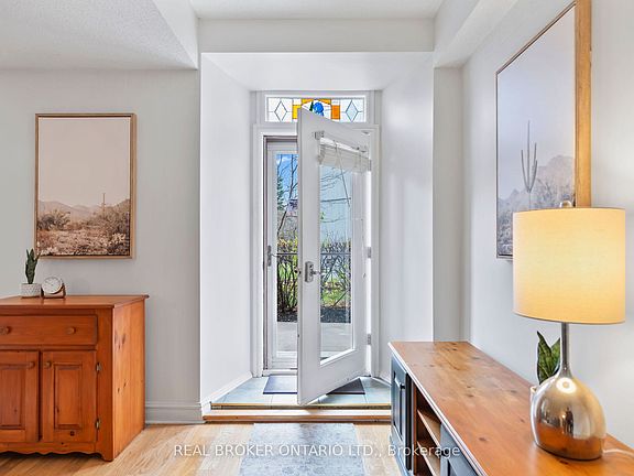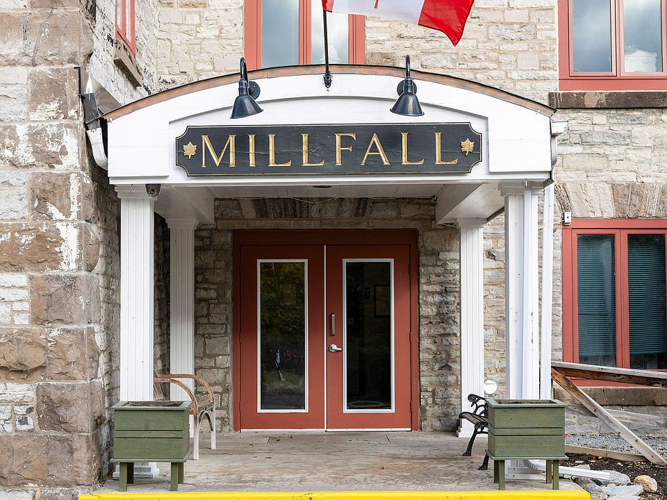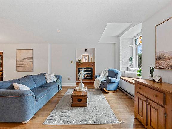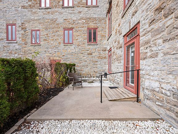 Welcome to Millfall, a beautifully restored 1800s woollen mill set directly on the banks of the Mississippi River, with a stunning waterfall running alongside the building. This iconic landmark blends heritage stonework and industrial character with boutique condominium living, creating one of the most unique residential settings in Almonte.This spacious one bedroom plus den condo is one of the building's most desirable offerings. Freshly painted and filled with natural light, the home features exposed brick and stone that highlight its rich mill history. The updated kitchen includes stainless steel appliances, stone countertops, and a functional layout that opens into the main living space. Large windows frame peaceful views of the Mississippi River, offering a calming backdrop from both the living room and bedroom.What truly sets this residence apart is the private main floor walkout patio. Only a small number of suites in Millfall enjoy direct patio access overlooking the river, creating an effortless indoor outdoor connection rarely available in the building. Lovingly maintained by its original owner since the building's conversion, this is the first time the unit has been offered for sale. The combination of character, natural light, and thoughtful updates makes this home stand out among the most special offerings in Millfall.Residents enjoy exceptional amenities including a rentable guest suite, kayak storage, outdoor gazebo by the water, common and recreation rooms, a fitness area, library, workshop, and additional storage. The community is known for its quiet atmosphere, well kept grounds, and appreciation for the building's heritage. Steps from Almonte's vibrant downtown, this residence offers an elevated lifestyle in one of the town's most cherished buildings.